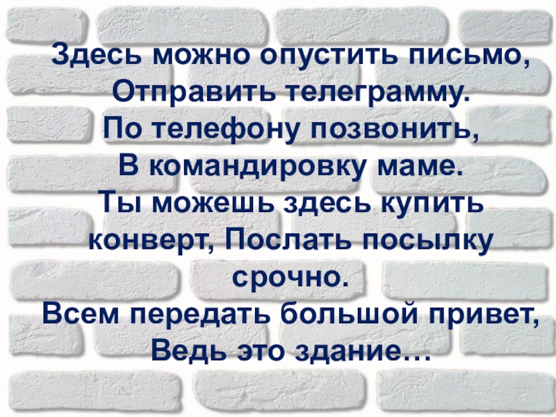 Слайд 29Здесь можно опустить письмо, Отправить телеграмму.