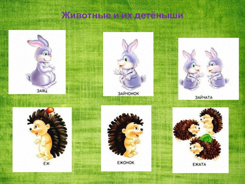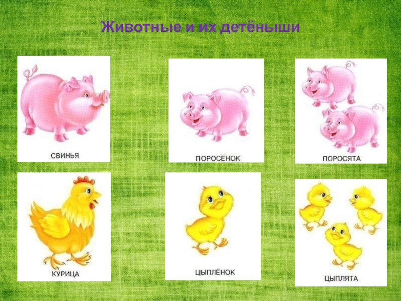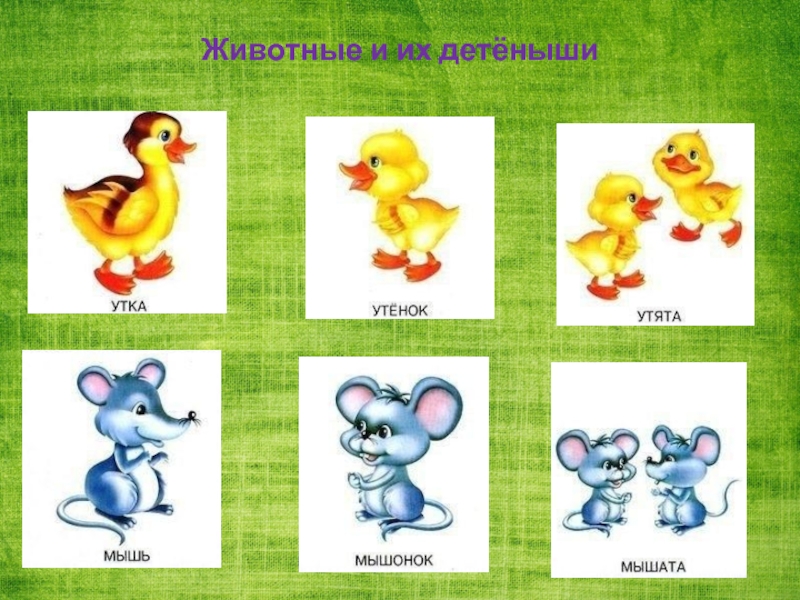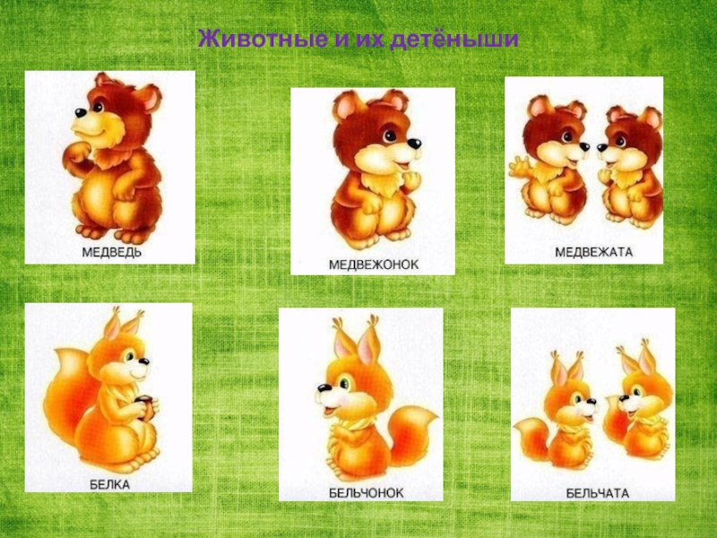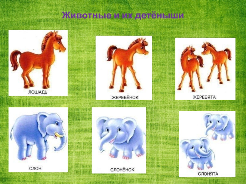 Слайд 10Животные и их детёныши