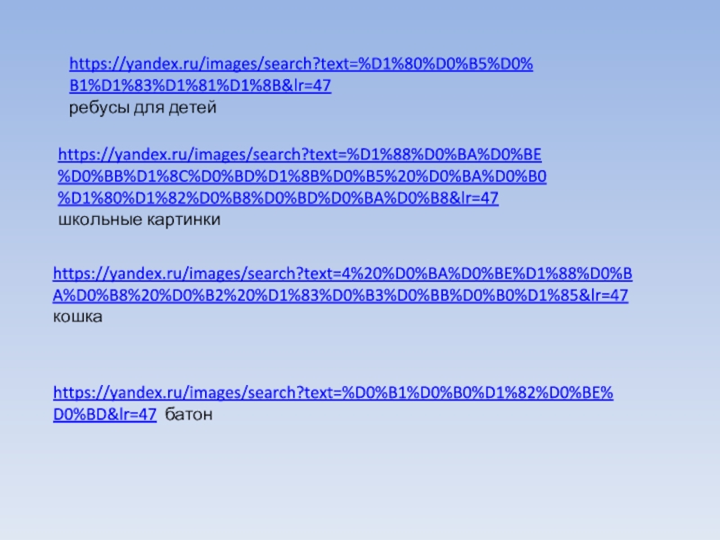 https://yandex.ru/images/search?text=%D1%88%D0%BA%D0%BE%D0%BB%D1%8C%D0%BD%D1%8B%D0%B5%20%D0%BA%D0%B0%D1%80%D1%82%D0%B8%D0%BD%D0%BA%D0%B8&lr=47 школьные картинкиhttps://yandex.ru/images/search?text=%D1%80%D0%B5%D0%B1%D1%83%D1%81%D1%8B&lr=47 ребусы для детейhttps://yandex.ru/images/search?text=4%20%D0%BA%D0%BE%D1%88%D0%BA%D0%B8%20%D0%B2%20%D1%83%D0%B3%D0%BB%D0%B0%D1%85&lr=47 кошкаhttps://yandex.ru/images/search?text=%D0%B1%D0%B0%D1%82%D0%BE%D0%BD&lr=47 батон