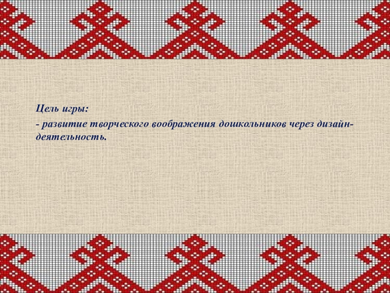 Цель игры:- развитие творческого воображения дошкольников через дизайн-деятельность.