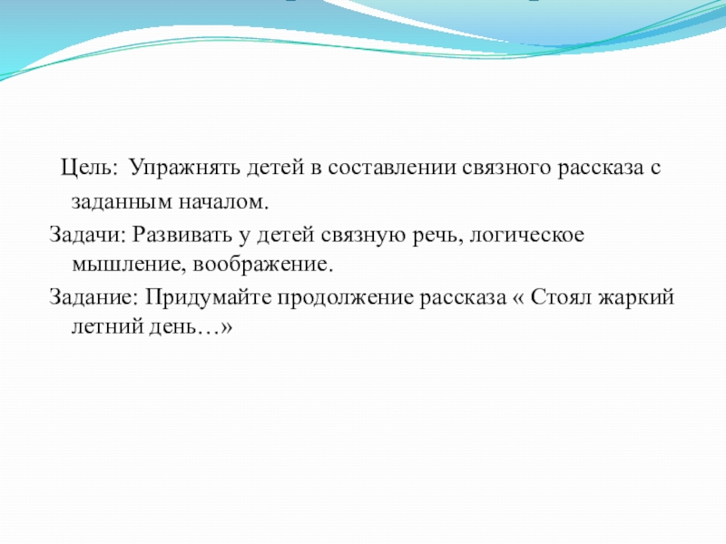 Задание: Придумайте продолжение рассказа « Стоял жаркий летний день…»