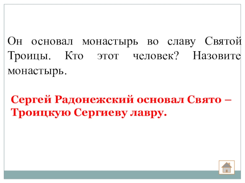 Сергей Радонежский основал Свято – Троицкую Сергиеву лавру.