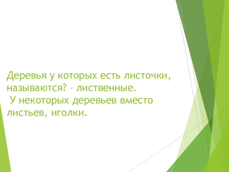 Слайд 7Деревья у которых есть листочки, называются? – лиственные. У некоторых деревьев