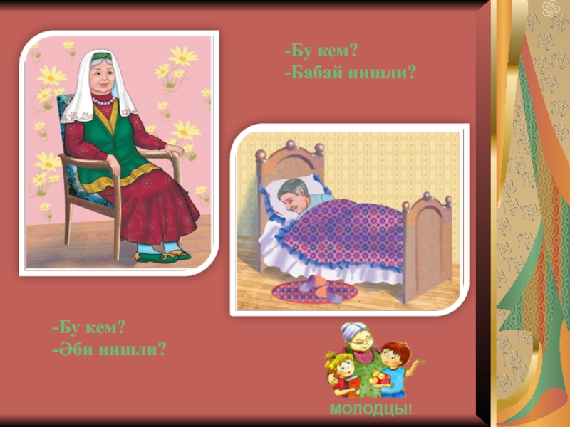 -Бу кем?-Әби нишли?-Бу кем?-Бабай нишли?МОЛОДЦЫ!