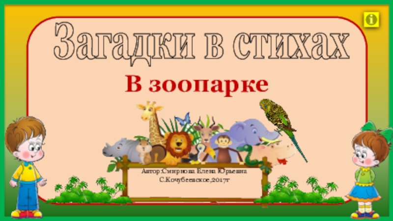 Загадки в стихахВ зоопаркеАвтор:Смирнова Елена ЮрьевнаС.Кочубеевское,2017г