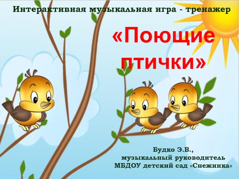 «Поющие птички»Интерактивная музыкальная игра - тренажерБудко Э.В., музыкальный руководительМБДОУ детский сад «Снежинка»