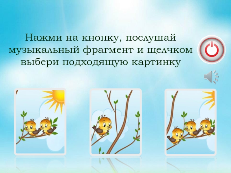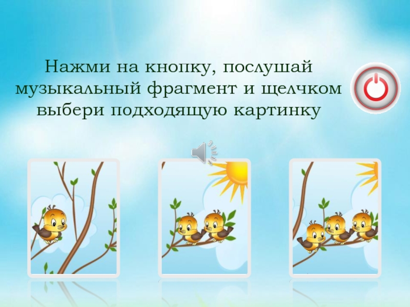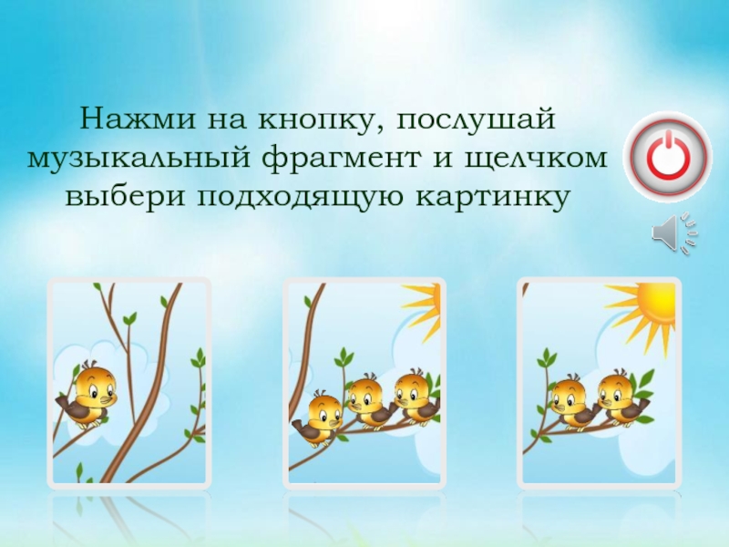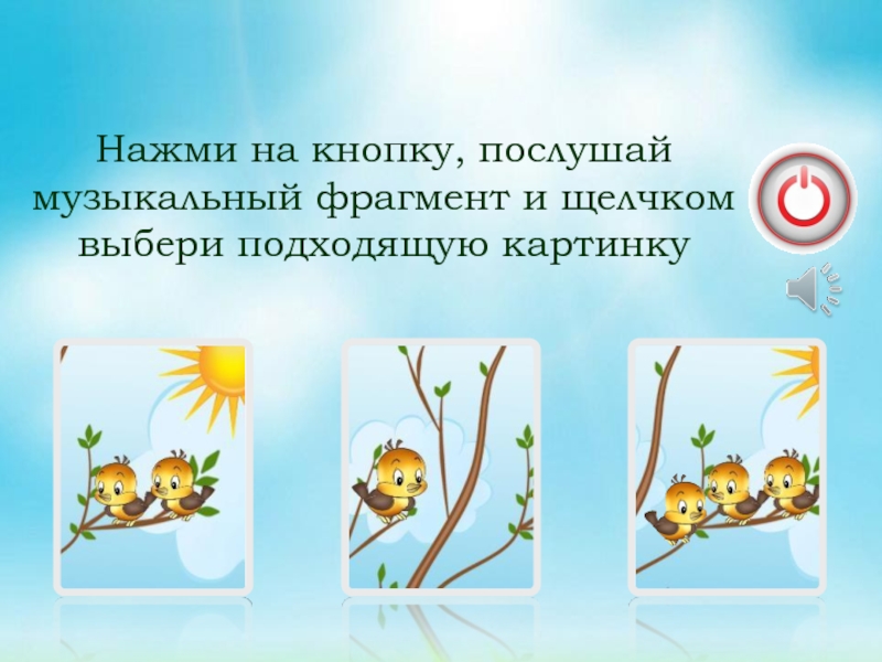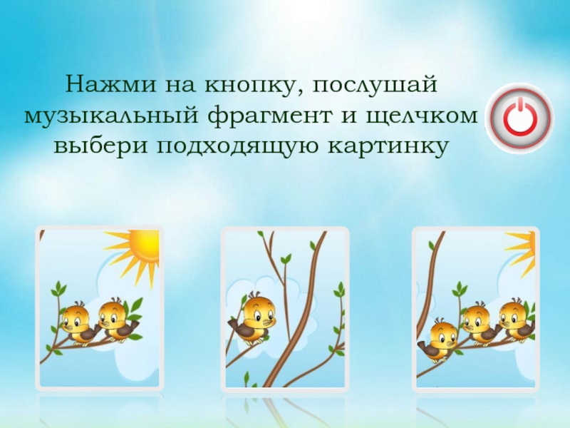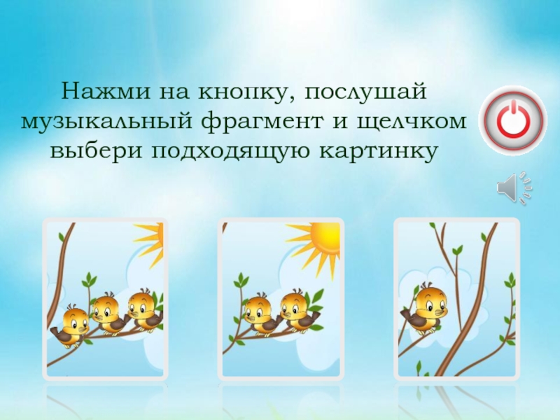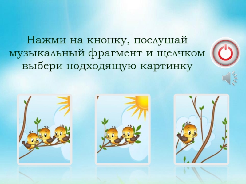 Нажми на кнопку, послушай музыкальный фрагмент и щелчком выбери подходящую картинку