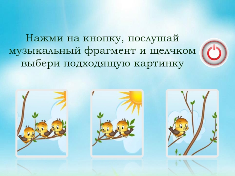 Слайд 3Нажми на кнопку, послушай музыкальный фрагмент и щелчком