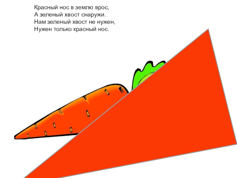 Слайд 5Красный нос в землю врос, А зеленый хвост снаружи. Нам зеленый хвост не нужен, Нужен только красный