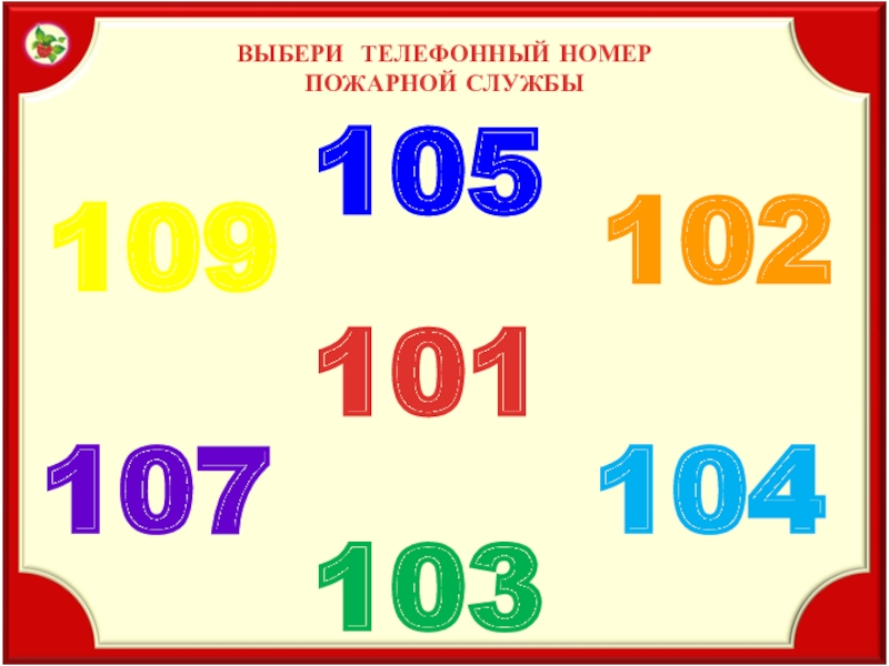 ВЫБЕРИ ТЕЛЕФОННЫЙ НОМЕР ПОЖАРНОЙ СЛУЖБЫ101109102103107104105