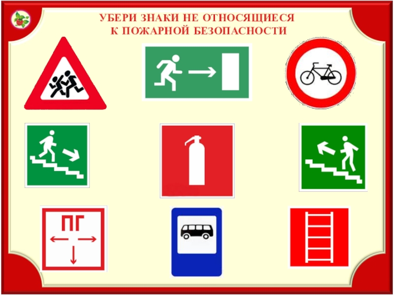 УБЕРИ ЗНАКИ НЕ ОТНОСЯЩИЕСЯ К ПОЖАРНОЙ БЕЗОПАСНОСТИ