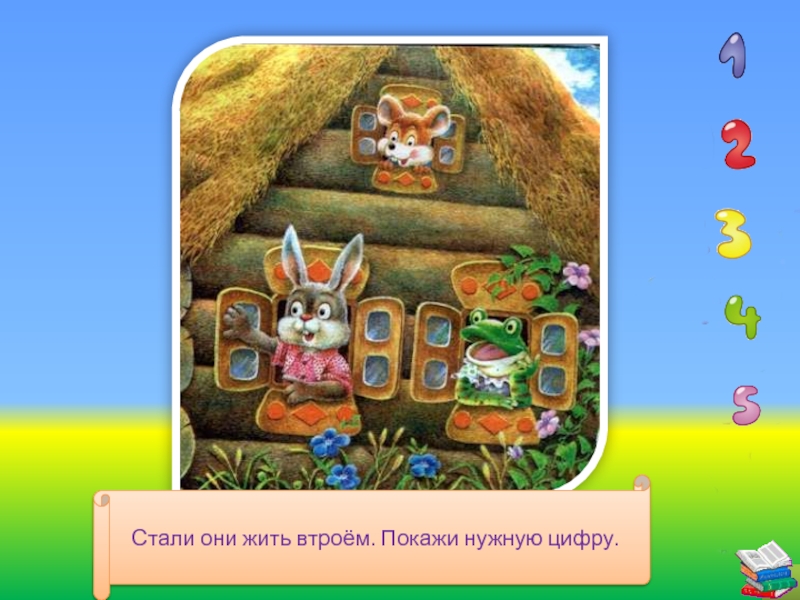 Слайд 9Стали они жить втроём. Покажи нужную цифру.