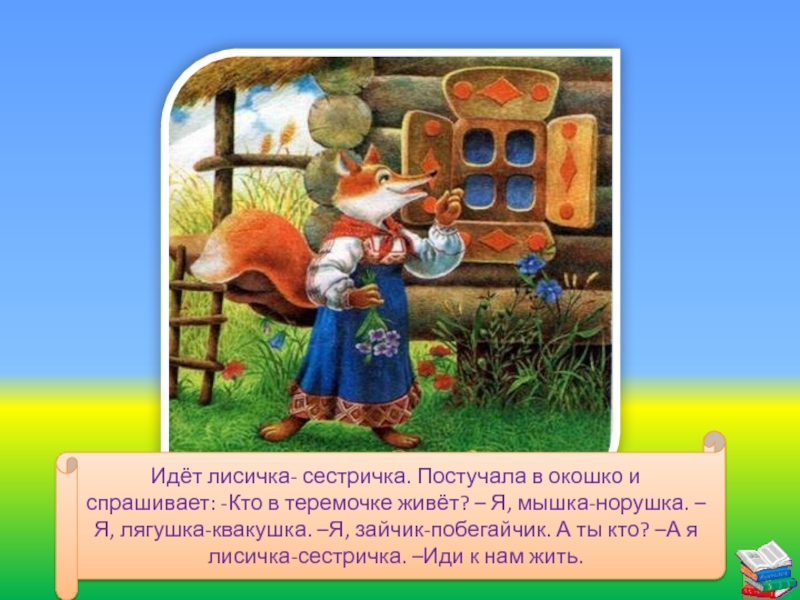 Слайд 11Идёт лисичка- сестричка. Постучала в окошко и спрашивает: -Кто в теремочке