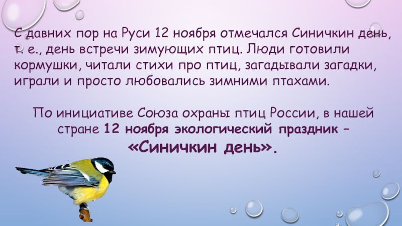 Слайд 312 ноября «синичкин день»