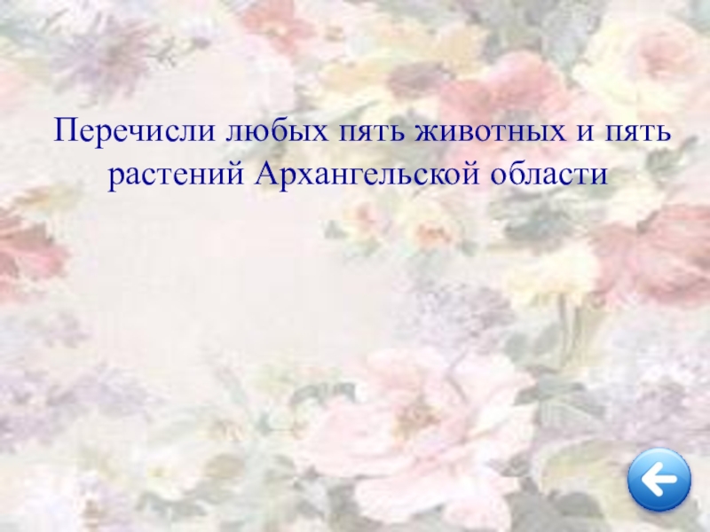 Слайд 37Перечисли любых пять животных и пять растений Архангельской области