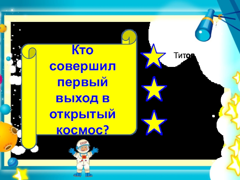 Слайд 1 «ЗВЕЗДНЫЙ ЧАС- КОСМОС»