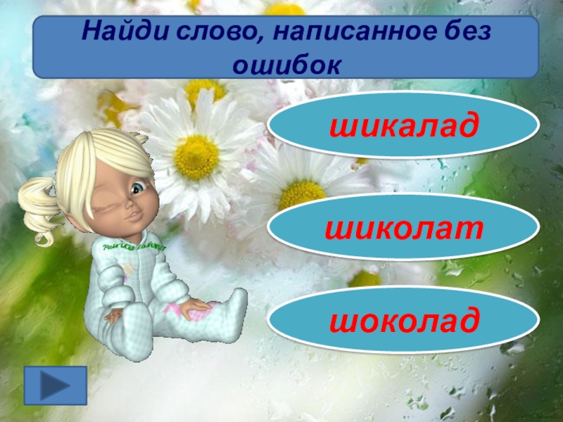 шикаладНайди слово, написанное без ошибокшоколадшиколат