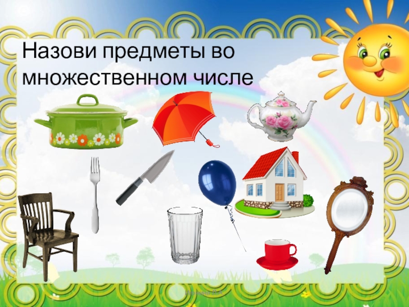 Слайд 10Назови предметы во множественном числе