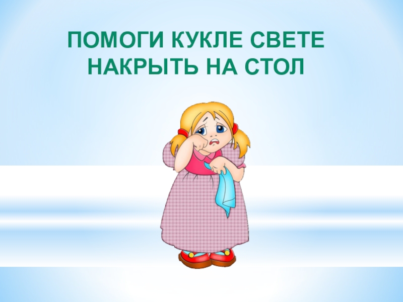 Слайд 8ПОМОГИ КУКЛЕ СВЕТЕ НАКРЫТЬ НА СТОЛ