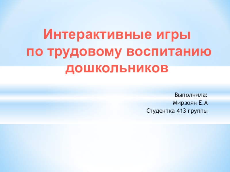 Выполнила:Мирзоян Е.АСтудентка 413 группыИнтерактивные игры  по трудовому воспитанию дошкольников