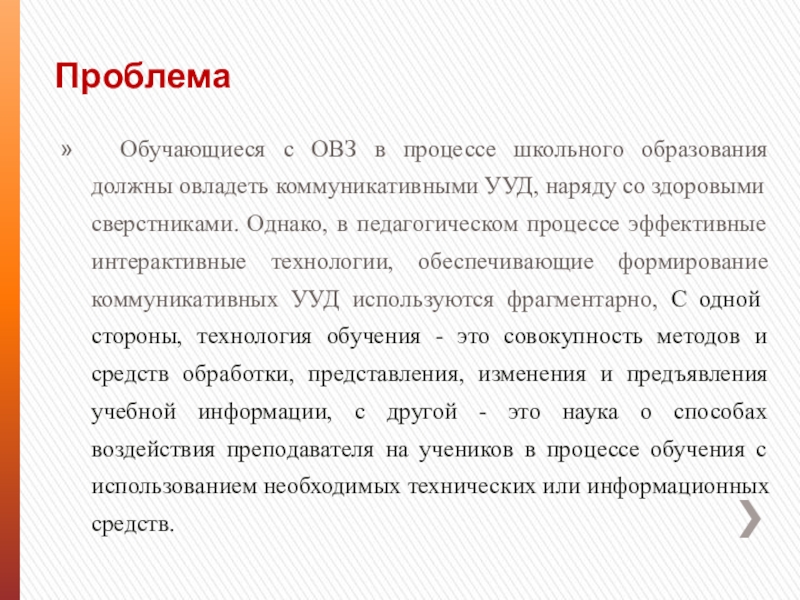 УУД, наряду со здоровыми сверстниками. Однако, в педагогическом процессе эффективные интерактивные технологии, обеспечивающие формирование коммуникативных УУД используются фрагментарно, С одной стороны, технология обучения - это совокупность методов и средств обработки, представления, изменения и предъявления учебной информации, с другой - это наука о способах воздействия преподавателя на учеников в процессе обучения с использованием необходимых технических или информационных средств.