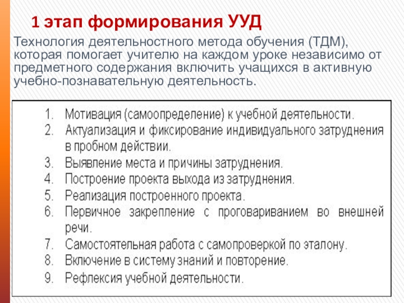 Слайд 121 этап формирования УУД