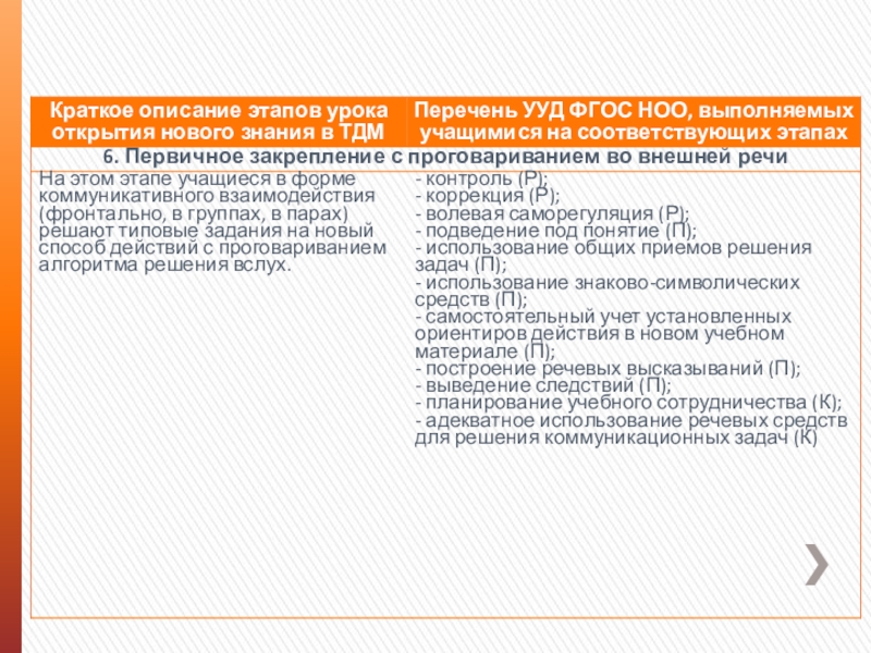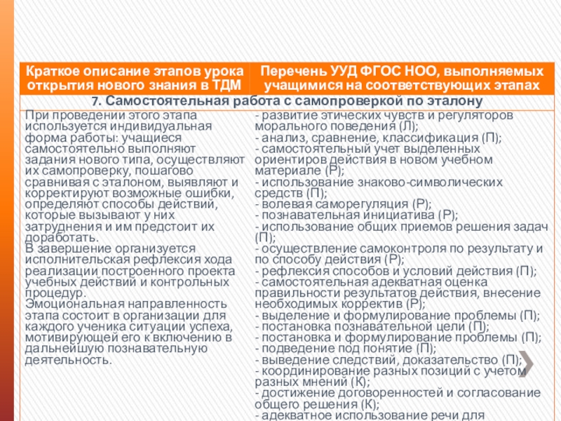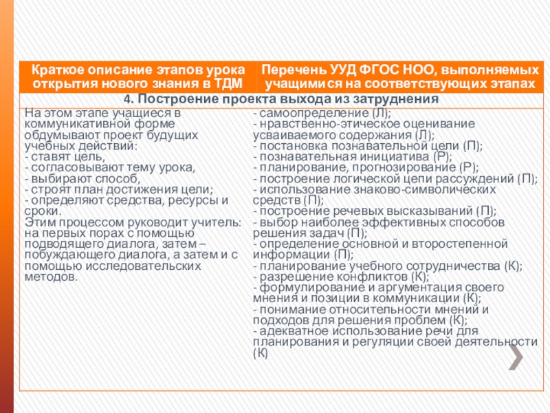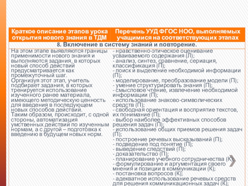 3) далее изученное УУД включается в практику учения на предметном содержании разных учебных дисциплин, организуется самоконтроль и, при необходимости, коррекция его выполнения;