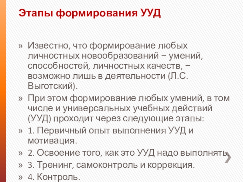 Слайд 10Этапы формирования УУД