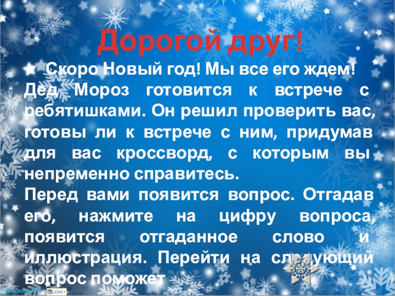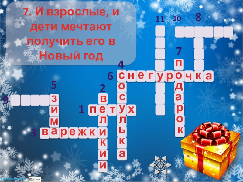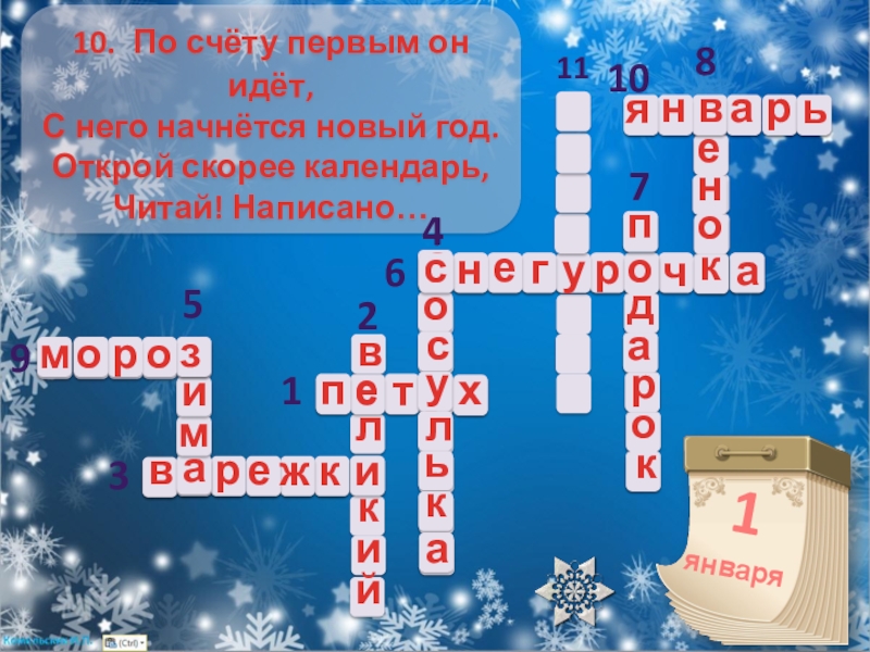 к встрече с ребятишками. Он решил проверить вас, готовы ли к встрече с ним, придумав для вас кроссворд, с которым вы непременно справитесь.