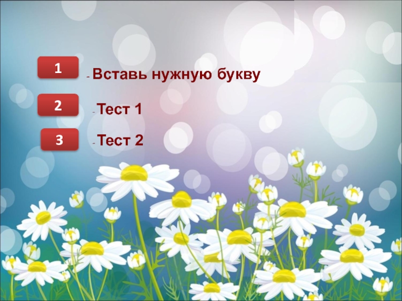 1- Вставь нужную букву2- Тест 13- Тест 2