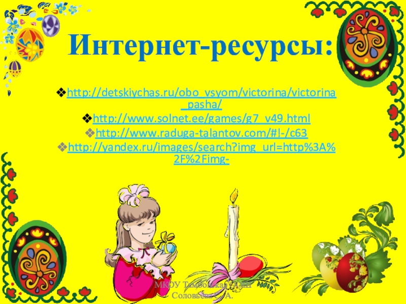 МКОУ Тамбовская ООШ Соловьёва С. А.