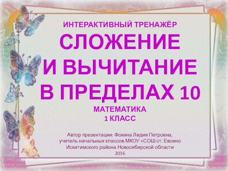 учитель начальных классов МКОУ «СОШ ст. Евсино