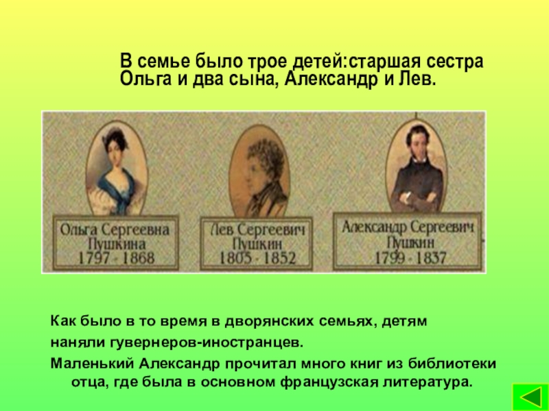 Маленький Александр прочитал много книг из библиотеки отца, где была в основном французская литература.