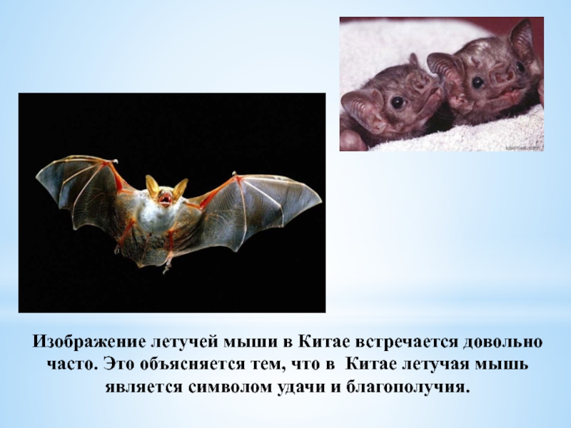 Слайд 12Изображение летучей мыши в Китае встречается довольно часто. Это объясняется тем,