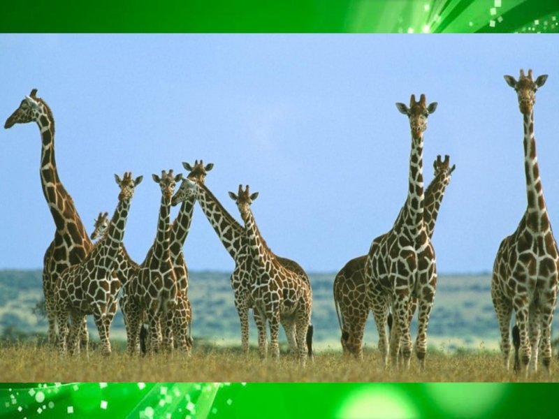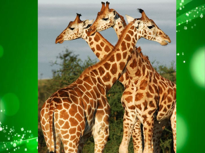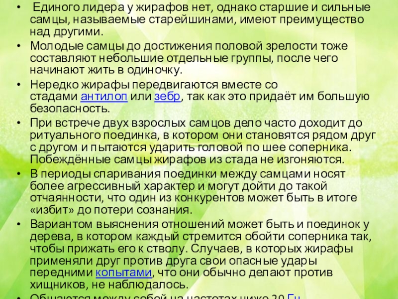 Слайд 14 Единого лидера у жирафов нет, однако старшие и сильные самцы, называемые