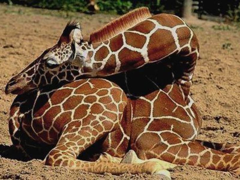 Спят жирафы как стоя, так и лёжа, согнув шею и положив голову на круп.