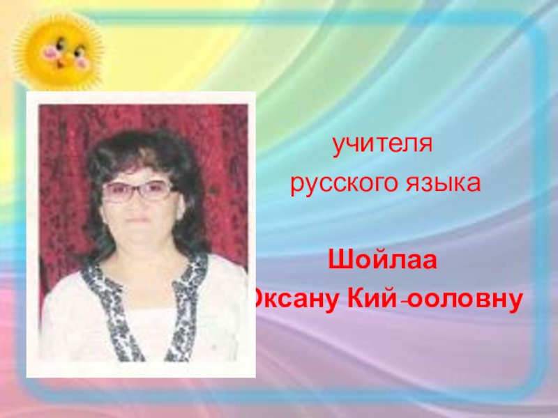 Слайд 1Портфолио учителя русского языка Шойлаа Оксаны Кий -ооловны