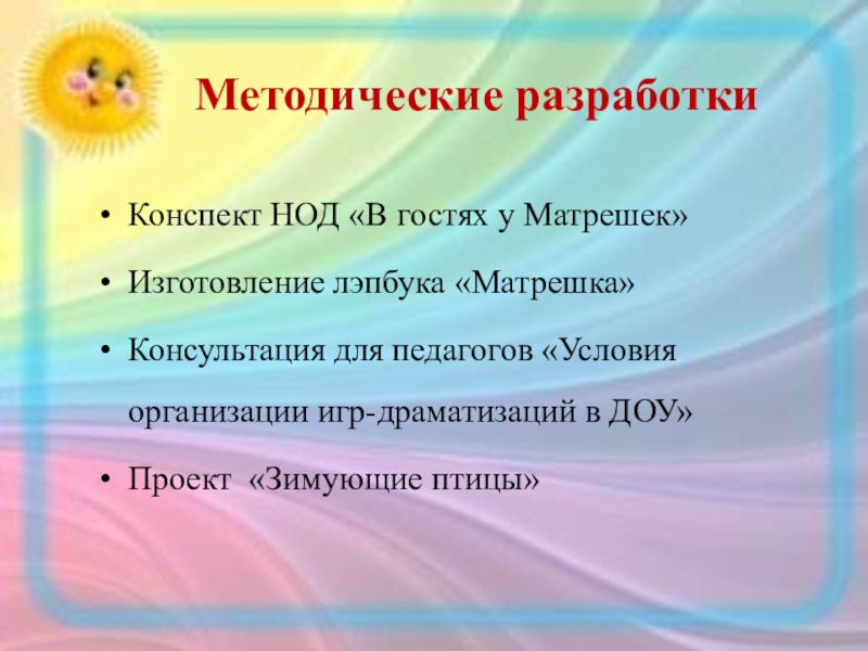 Методические разработки  Конспект НОД «В гостях у Матрешек»Изготовление лэпбука «Матрешка»Консультация для педагогов «Условия организации игр-драматизаций в