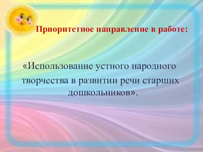 Приоритетное направление в работе:«Использование устного народного творчества в развитии речи старших дошкольников».