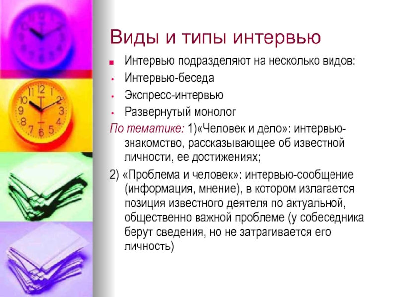 2) «Проблема и человек»: интервью-сообщение (информация, мнение), в котором излагается позиция известного деятеля по актуальной, общественно важной проблеме (у собеседника берут сведения, но не затрагивается его личность)