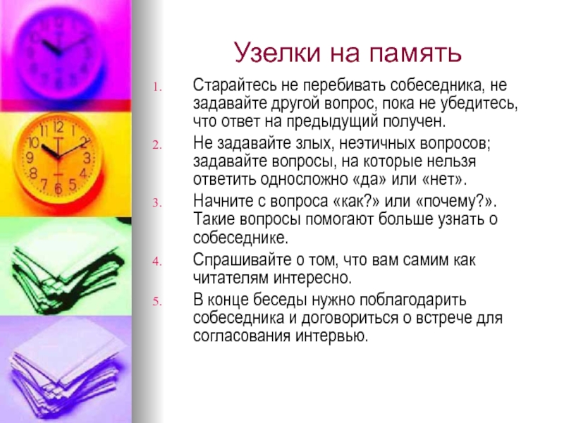 Старайтесь не перебивать собеседника, не задавайте другой вопрос, пока