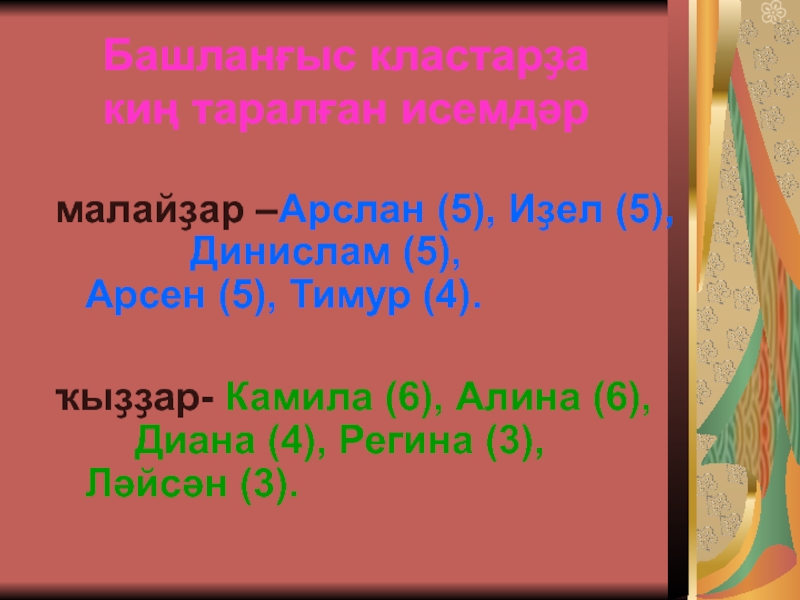 Слайд 8Башланғыс кластарҙа киң таралған исемдәр