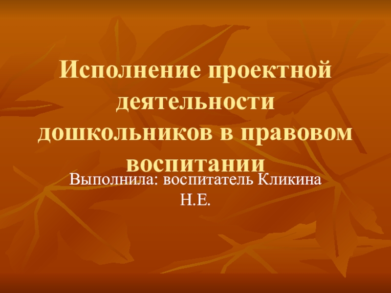 Исполнение проектной деятельности дошкольников в правовом воспитанииВыполнила: воспитатель Кликина Н.Е.