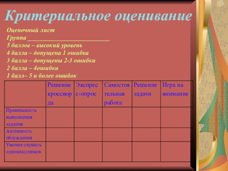 Критериальное оценивание