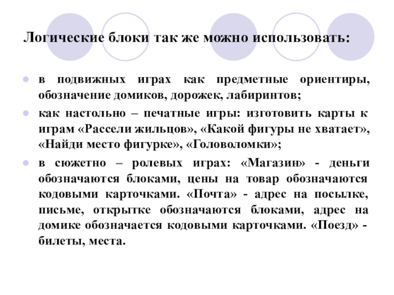 Логические блоки Дьенеша, предполагают бесчисленное множество игр, которое можно придумывать и