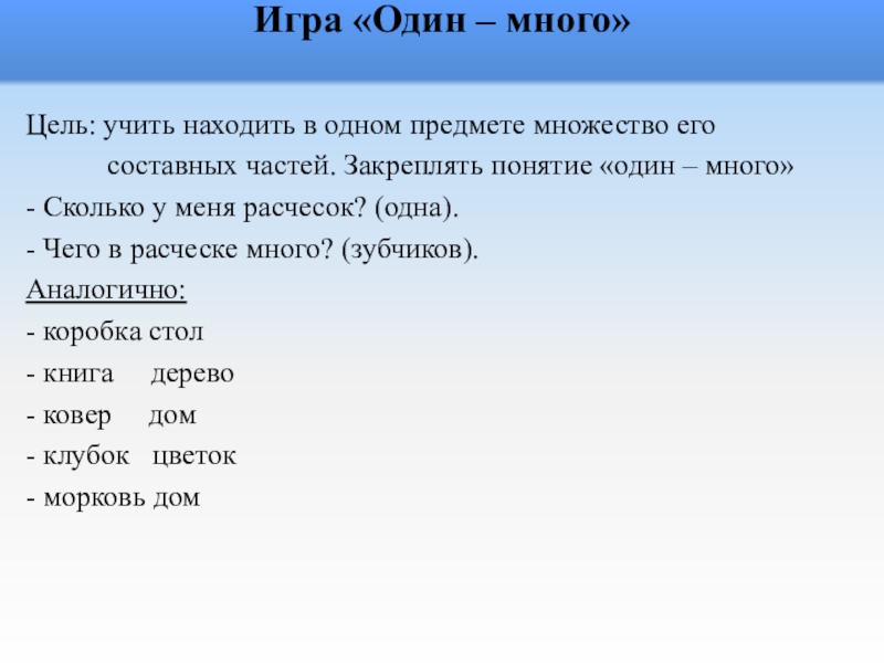 Слайд 40Игра «Один – много»