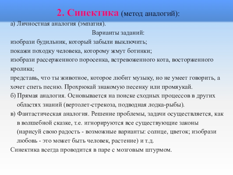 Слайд 102. Синектика (метод аналогий):