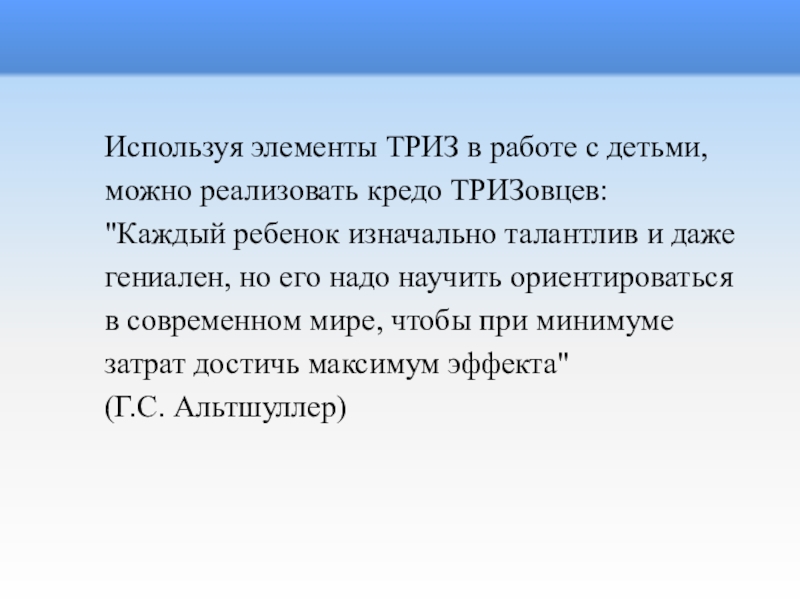 можно реализовать кредо ТРИЗовцев: