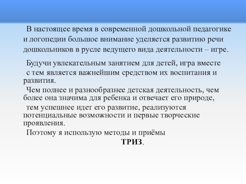 Использование элементов технологии ТРИЗ для развития речи дошкольников