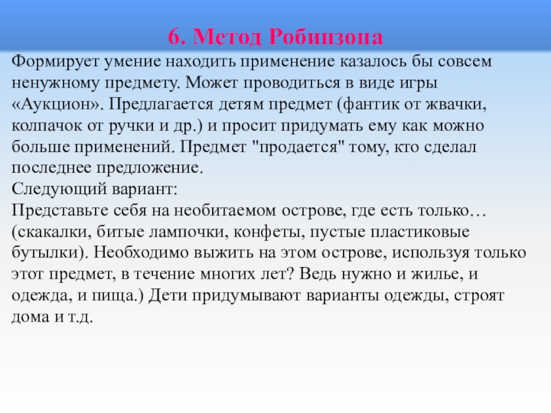 Чтобы стимулировать творческую активность детей и устранить отрицательное воздействие психологической инерции,